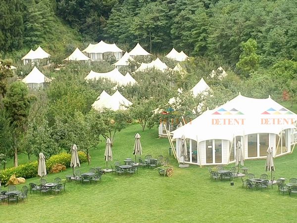 多边形酒店帐篷 Polygon Resort Tent Sizes八边形 30平方;九边形 39平方;十边形 49平方;十二边形 70平方八边形+六边形 54平方; 3个顶 90平方; 4个顶 62平方;4个顶150平方