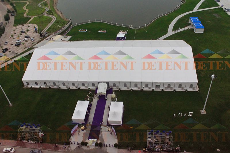 3. Features of Wedding Tent - Allowed temperature resistance: -30 degree Celsius~+70 degree Celsius - Wind load: max. 100km/h (can be reinforced) - Snow load: 75kg/sqm - Easy to be assembled and dismantled, convenient to stock and transport. - No poles inside, 100% interior space available. - Sizes can be customized - Waterproof, fire retardant, UV treated