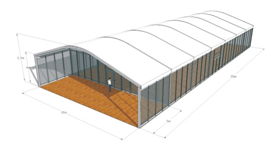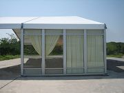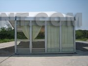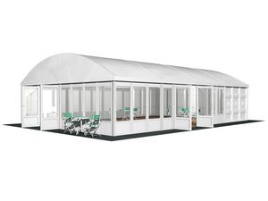 Dome Tents are all made out of modular system, it can be extended by 3m bay or 5m bay without limit in length, frame made out of reinforced alu alloy(6061/T6),fabric made out of double coated PVC,flameresistance is based on DIN4102 B1,M2 standard.