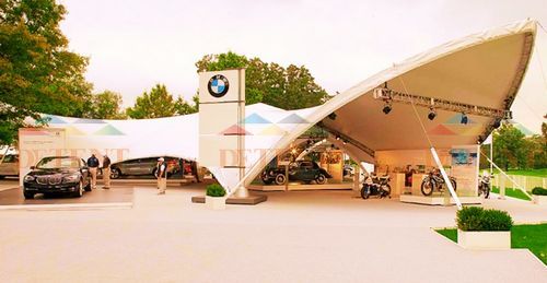 This is an impressive marquee which can be constructed open or closed to suit your event. Its beauty is in  its simplicity –a clean, modern shape which not only looks stunning but also offers fantastic acoustics and the perfect backdrop on which to project some amazing lighting effects.